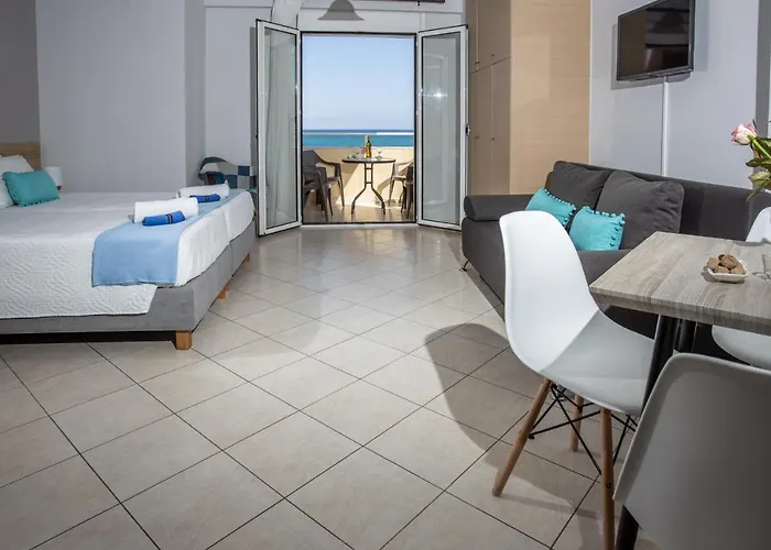 De andre bekvemmeligheder omfatter kaffemaskiner/tekedler, et køleskab og køkkenudstyr i et fuldt udstyret køkken for selvforplejning. Der er 70 km fra Kreta Chania lufthavn.